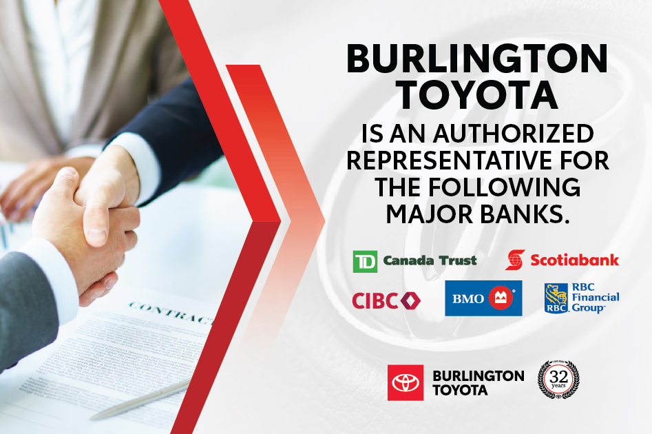 Disclaimer : Finance and Lease offers on approved credit. Regional offers, lease and finance conditions apply. See your local Toyota dealer for more information. Use of any calculation and/or tools on https://www.burlingtontoyota.com does not constitute an offer of direct financing or any particular lease, finance, purchase option or transaction. Calculation and tools are intended for illustrative purposes only. Rates and requirements may vary depending on credit worthiness. Every effort is made to ensure the accuracy of the content on the pages on https://www.burlingtontoyota.com. In the event of a discrepancy, error or omission, vehicle prices, offers and features as established by Toyota Canada and participating Toyota dealers in Canada, will prevail.